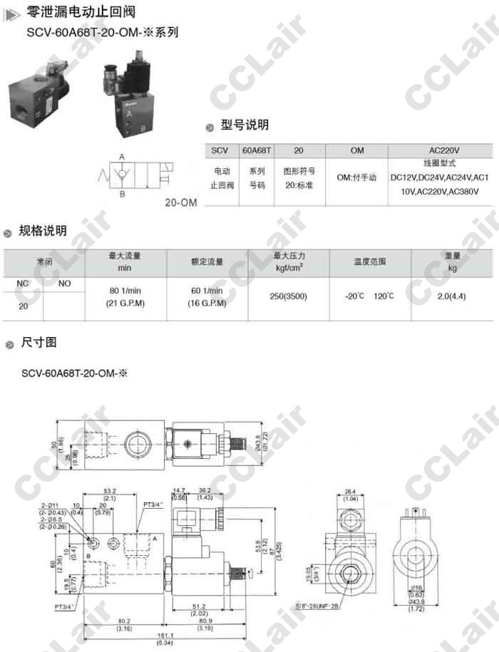 SCV-60A68T-20-OM-DC12V,SCV-60A68T-20-OM-DC24V,SCV-60A68T-20-OM-AC24V,零泄漏電動止回閥