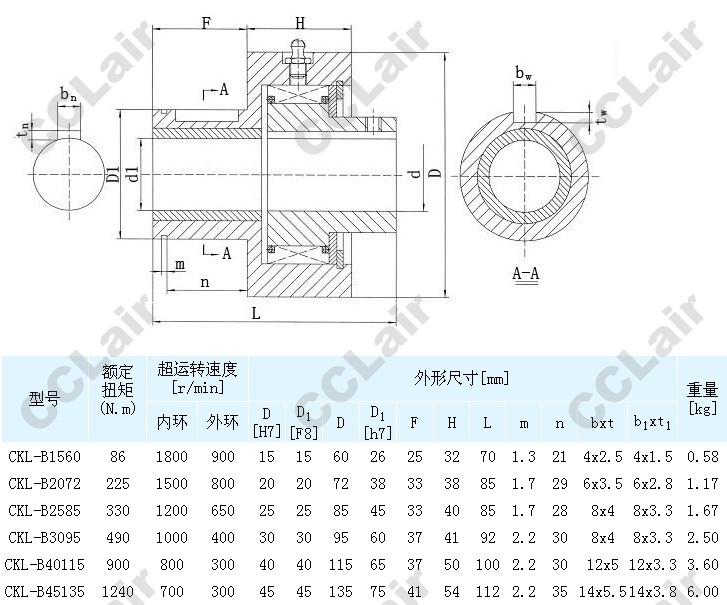 CKL-B1560,CKL-B2072,CKL-B2585,CKL-B3095,CKL-B40115,CKL-B45135,楔塊式超越離合器