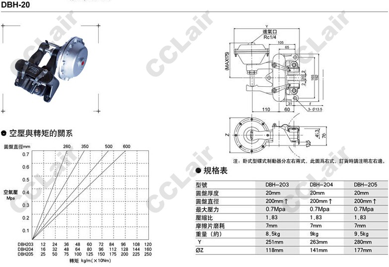 DBH-203,DBH-204,DBH-205,碟式制動(dòng)器,CCLair