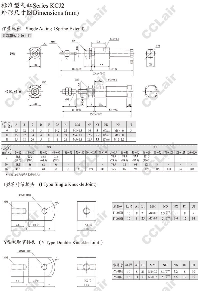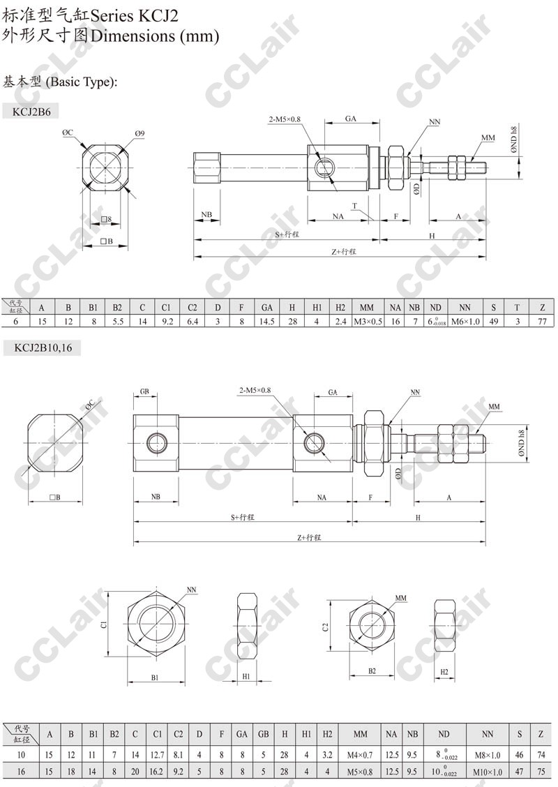 KCJ2B6,KCJ2B10,KCJ2B16,KCJ2B10-150,KCJ2B16-15,KCJ2B6-60,KCJ2B10-45,KCJ2B16-150,ARK標準筆型氣缸