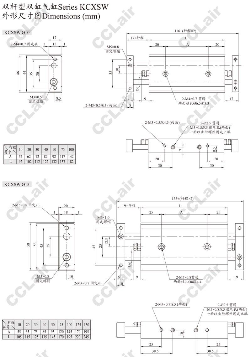 KCXSWM10,KCXSWM15,KCXSWM20,KCXSWM25,KCXSWM10-100,KCXSWM15-75,KCXSWM25-50,ARK雙缸氣缸