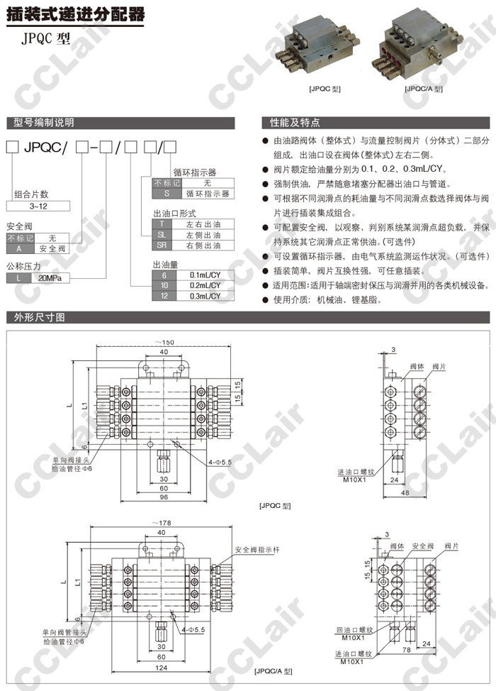 3JPQC,4JPQC,5JPQC,6JPQC,7JPQC,8JPQC,9JPQC,10JPQC,11JPQC,12JPQC,3JPQC/A-L/6SR,插裝式遞進(jìn)分配器