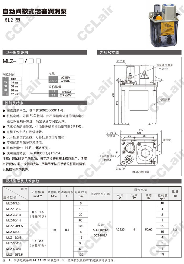 MLZ-6,MLZ-15,MLZ-30,MLZ-60,MLZ-120,MLZ-6/1.5,MLZ-15/1.5,MLZ-60/2.5,MLZ-120/2.5,自動(dòng)間歇式活塞潤(rùn)滑泵 |