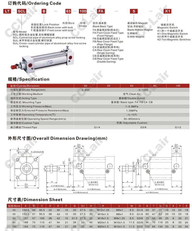 LTSULB-40-100,LTSULB-50-100,LTSULB-63-100,LTSULB-80-100,LTSULB-100-100,自鎖型氣缸
