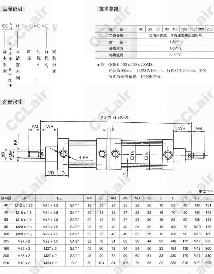 QGAH-40,QGAH-50,QGAH-63,QGAH-80,QGAH-100,QGAH-125,QGAH-160,QGAH-200,QGAH-250,雙活塞氣缸
