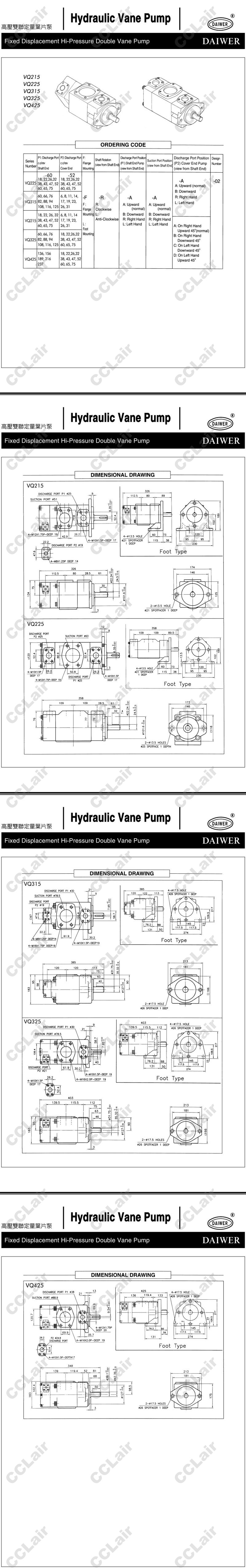 VQ225,VQ315,VQ215,VQ325,VQ425,VQ225-75-18-F-R,VQ425-237-43-F-R,VQ325-94-75-F-R,DAIWER高壓雙聯(lián)定量葉片泵