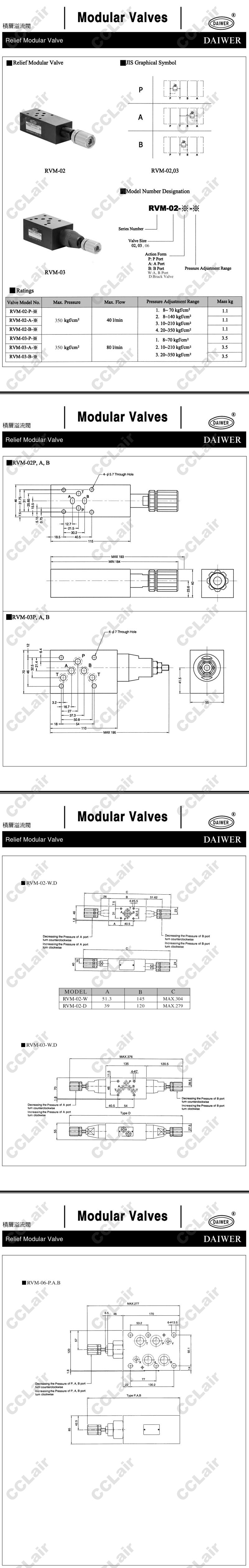 RVM-02-P,RVM-02-A,RVM-02-B,RVM-03-P,RVM-03-A,RVM-03-B,DAIWER積層溢流閥 |