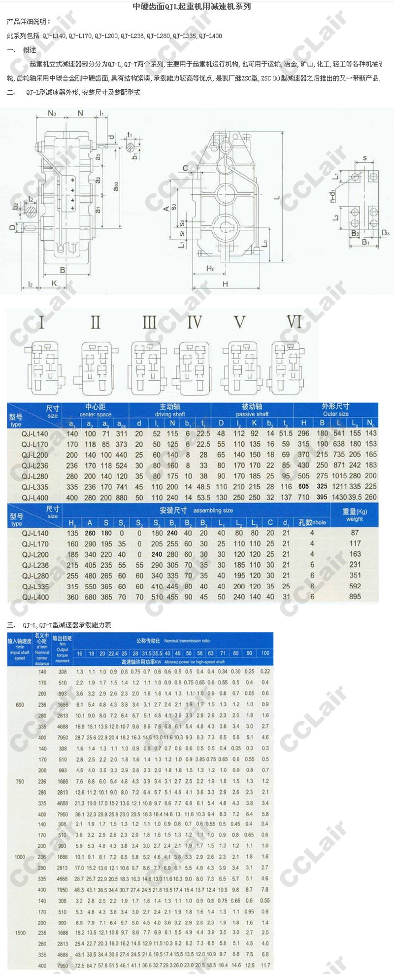 QJ-L140,QJ-L170,QJ-L200,QJ-L236,QJ-L280,QJ-L335,QJ-L400,起重機用減速機