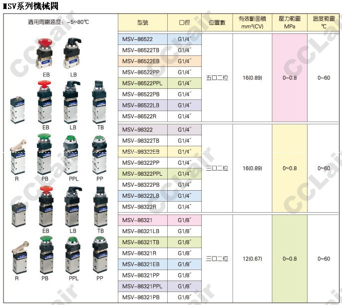 MSV-86522,MSV-98322,MSV-86321,MSV-86522TB,MSV-86321LB,MSV-86321EB,國鷹KUOIN機械閥