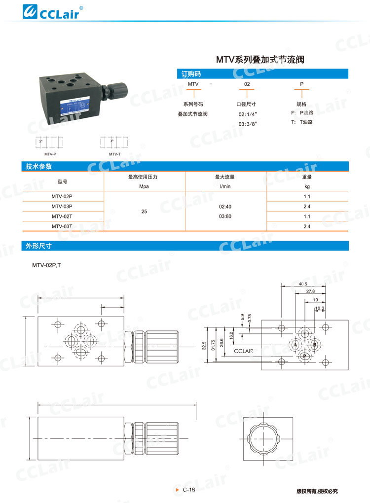 MTV-02P,MTV-02T,MTV-03P,MTV-03T,疊加式節(jié)流閥