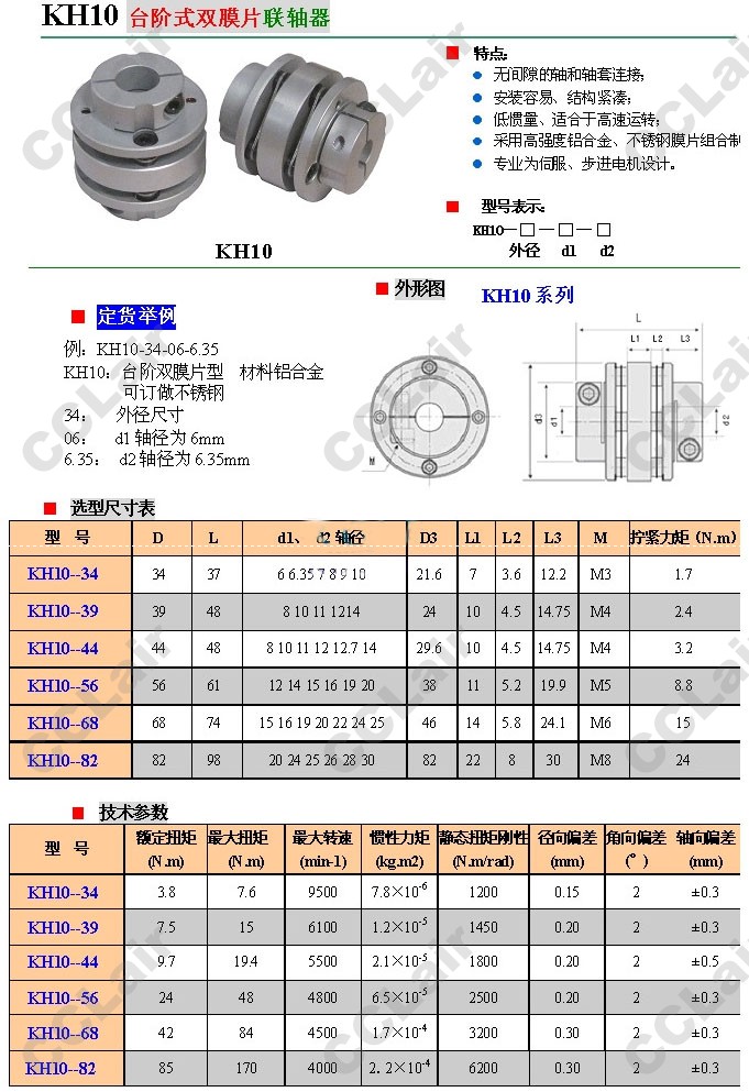 KH10-34,KH10-39,KH10-44,KH10-56,KH10-68,KH10-82,法蘭式雙膜片聯(lián)軸器