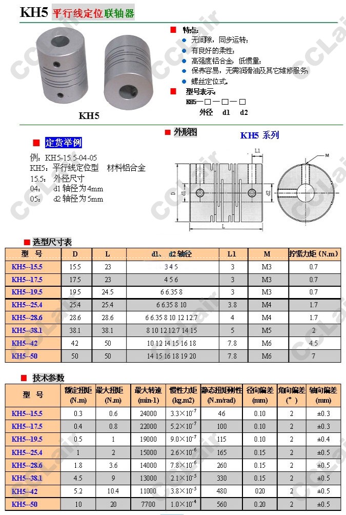 KH5-15.5,KH5-17.5,KH5-19.5,KH5-25.4,KH5-28.6,KH5-38.1,KH5-42,KH5-50,平行線定位聯(lián)軸器