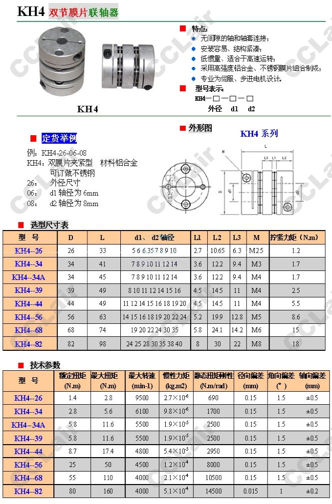 KH4-26,KH4-34,KH4-34A,KH4-39,KH4-44,KH4-56,KH4-68,KH4-82,鋁合金雙節(jié)膜片聯(lián)軸器