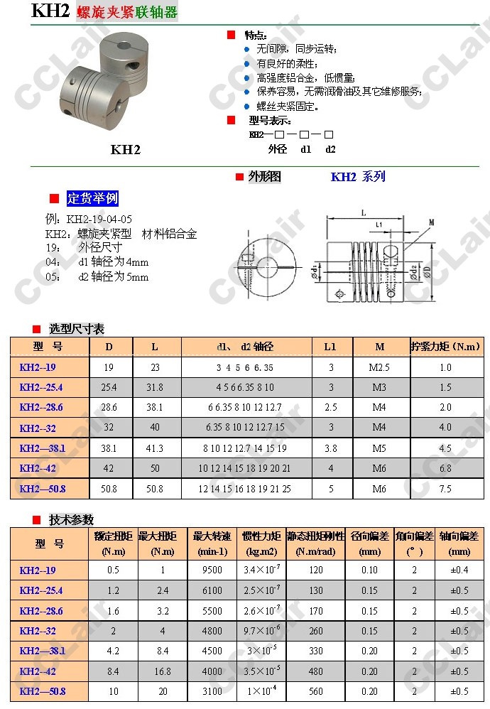 KH2-19,KH2-25.4,KH2-28.6,KH2-32,KH2-38.1,KH2-42,KH2-50.8,螺旋夾緊聯(lián)軸器
