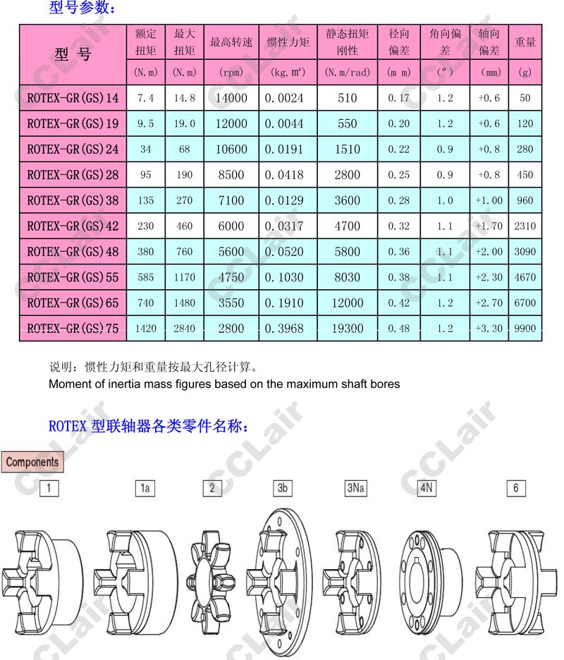 ROTEX-GR(GS)19,ROTEX-GR(GS)24,ROTEX-GR(GS)38,ROTEX-GR(GS)42,ROTEX-GR(GS)55,鋁合金無齒隙梅花彈性聯(lián)軸器