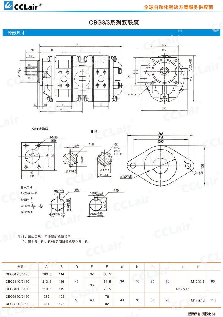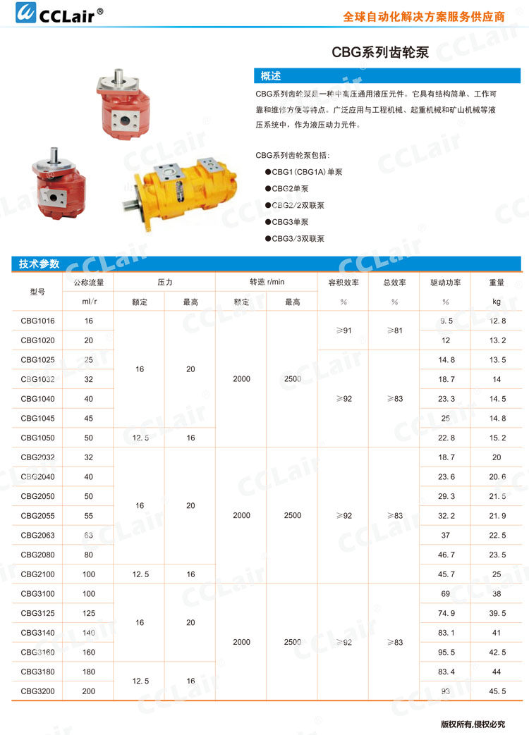 CBG2040/2040,CBG2050/2050,CBG2063/2063,CBG2080/2080,CBG2100/2100,雙聯(lián)齒輪泵