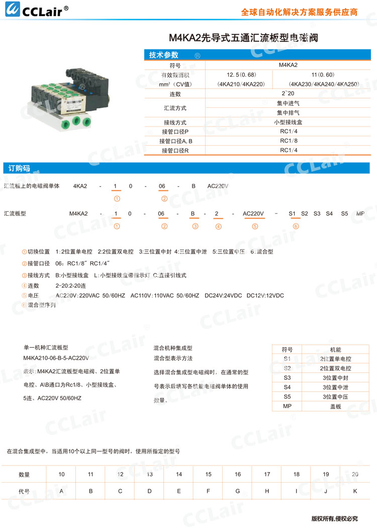 M4KA210-06,M4KA220-06,M4KA230-06,M4KA240-06,M4KA250-06,先導(dǎo)式五通匯流板型電磁閥