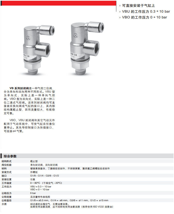 VBU1/8,VBU1/4,VBU3/8,VBU1/2,VBO1/8,VBO1/4,VBO3/8