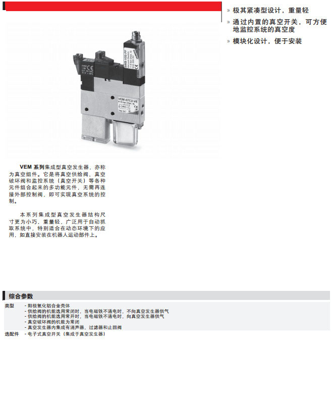 VEM-05C2-VE,VEM-05A2-VE,VEM-07C2-VE,VEM-07A2-VE,camozzi真空發(fā)生器 |