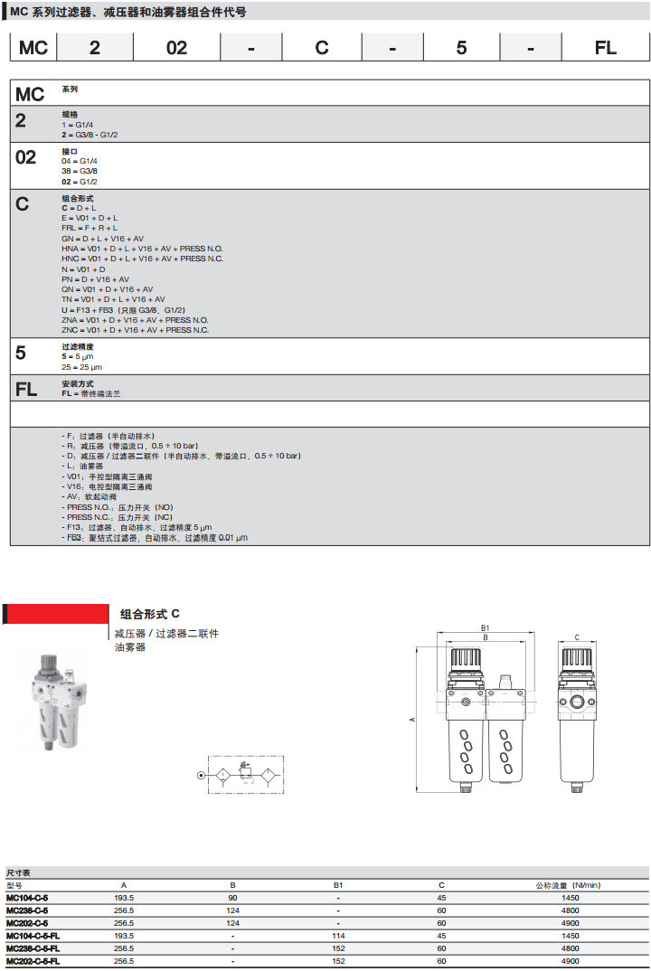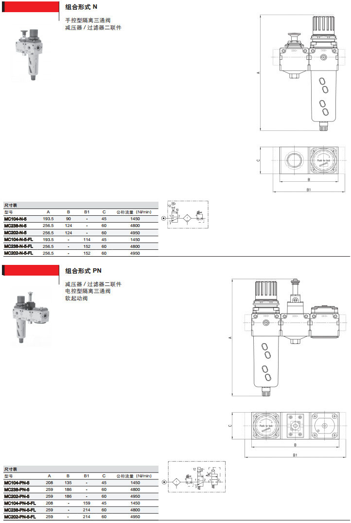 MC104-C-5,MC238-E-5,MC202-HNA-5,MC104-N-5,camozzi氣源處理組合件