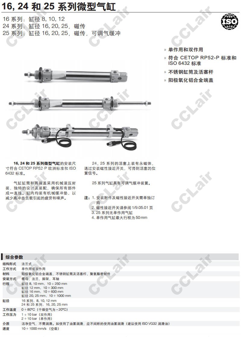 16N1A08A100,16N2A10A100,16N3A12A100,16N7A16A100,16N1A20A100,16N1A20RL100,camozzi微型氣缸