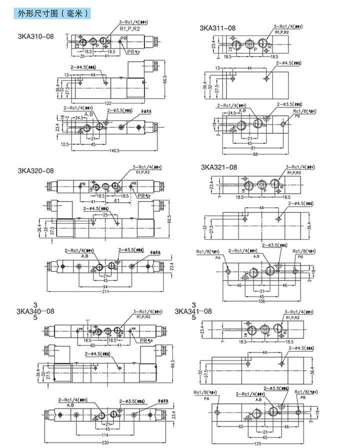 3KA311-08,3KA321-08,3KA331-08,3KA341-08,3KA351-08,先導式五通氣控閥