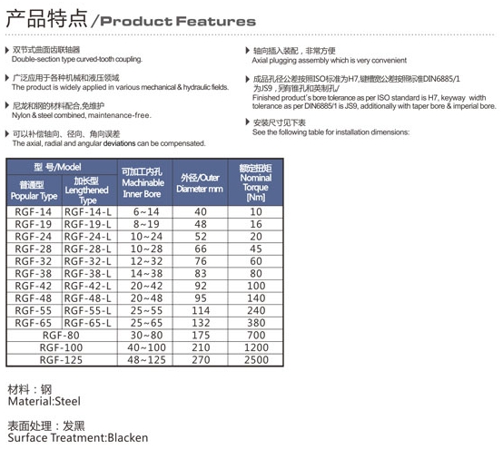 RGF-14,RGF-19,RGF-24,RGF-28,RGF-32,RGF-38,RGF-42,RGF-48,曲面聯(lián)軸器