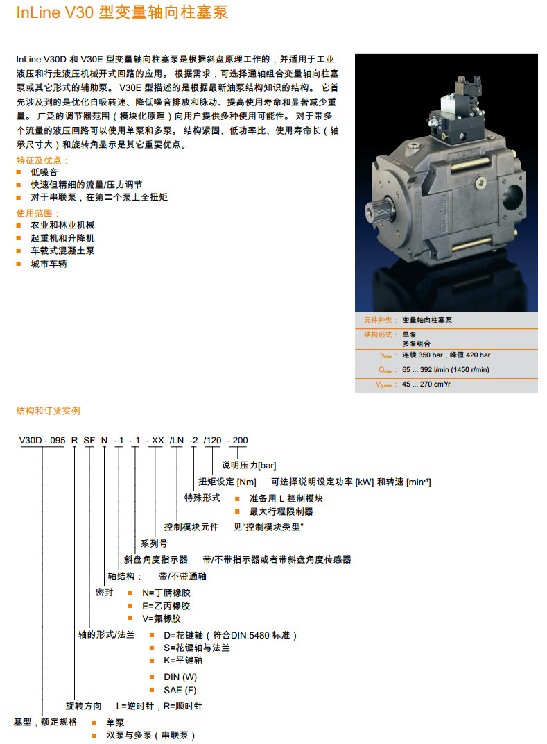 V30D-045LSFN-1,V30D-075RSFN-1,V30D-095RSFE-1,V30D-115RSFV-1,變量軸向柱塞泵 |