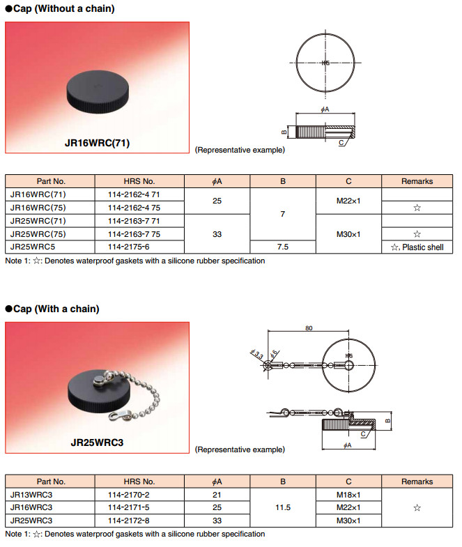 JR13WP-5P,JR16WP-7P,JR16WP-10P,JR21WP-10P,JR21WP-16P,JR25WPH-4P,JR25WP-16P,
