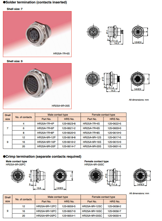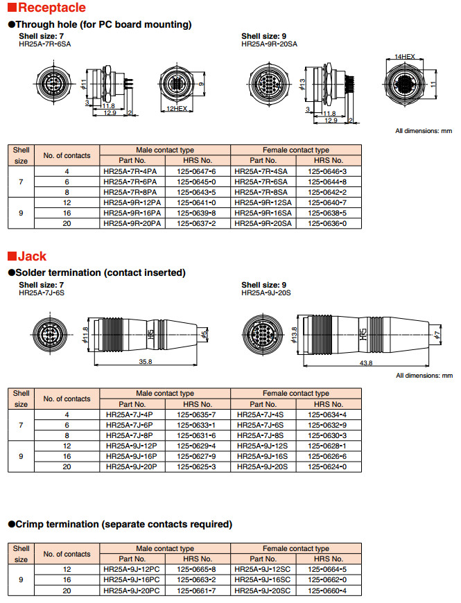 HR25A-7P-4P,HR25A-9P-16PC,HR25A-9R-20PC,HR25A-9J-16P |