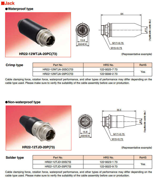 HR22-12WTPA-20SC,HR22-12TPD-20SC,HR22-12WTLP-20PC,HR22-12TJD-20S, |
