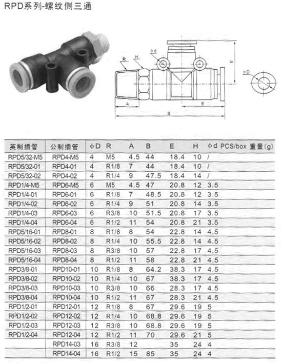 RPD5/32-M5,RPD1/4-01,RPD3/8-02,RPD1/2-01,RPD4-M5,RPD6-03,RPD8-01,螺紋側(cè)三通