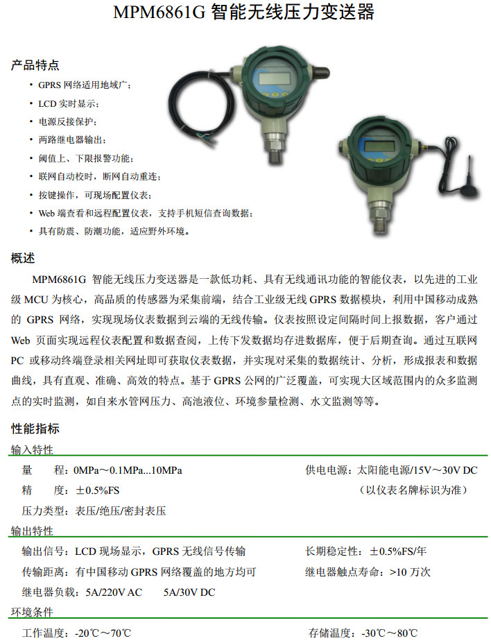 MPM6861G-0G,MPM6861G-0.1G,MPM6861G-0.1A,MPM6861G-10A,MPM6861G-0S,智能無線壓力變送器