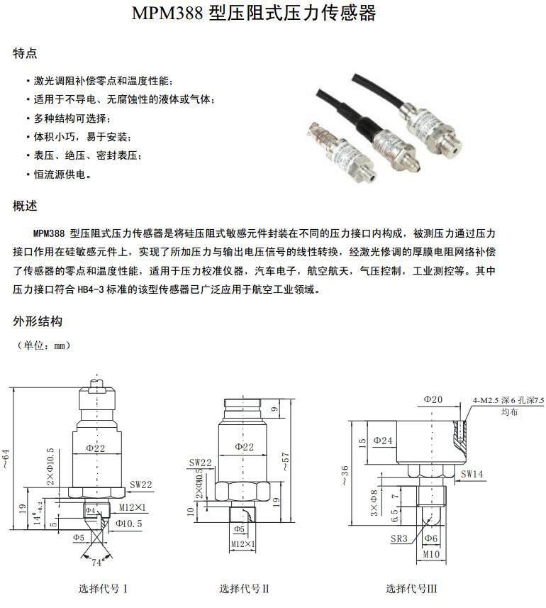 MPM388-OBG,MPM388-OAA,MPM388-02S,MPM388-07G,MPM388-08A,MPM388-09S,壓阻式壓力傳感器