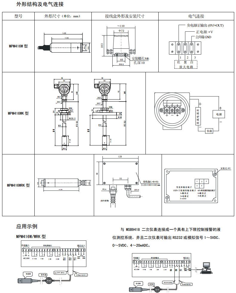 MPM416W-1,MPM416W-2,MPM416WK-1,MPM416WK-2,MPM416WRK-5,液位變送器 |