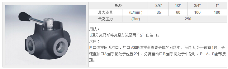 HYDF3 VIE 3/8",HYDF3 VIE 1/2",HYDF3 VIE 3/4",HYDF3 VIE 1",3位3通分流閥