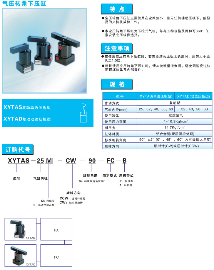 XYTAD-32M-CW-90-FA,XYTAD-40M-CW-90-FA,XYTAD-50M-CW-90-FA,XYTAD-63M-CW-90-FA,
