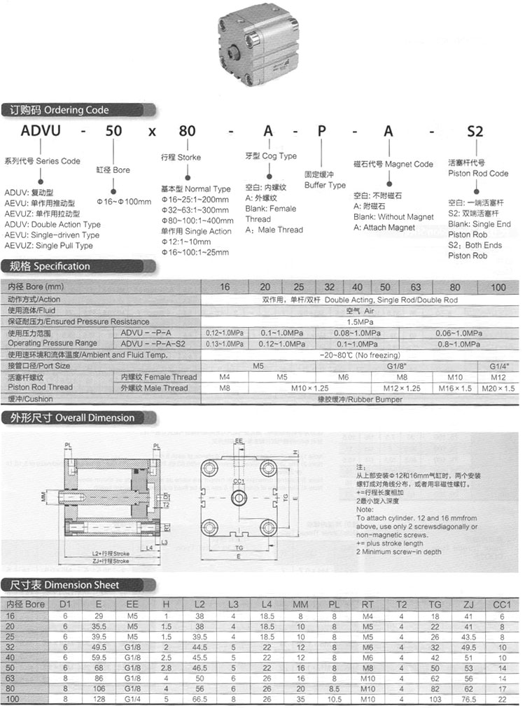ADVU-32*80-A-P-A,ADVU-40*80-A-P-A,ADVU-50*80-A-P-A,ADVU-63*80-A-P-A,ADVU-80*80-A-P-A,ADVU-100*80-A-P-A,
