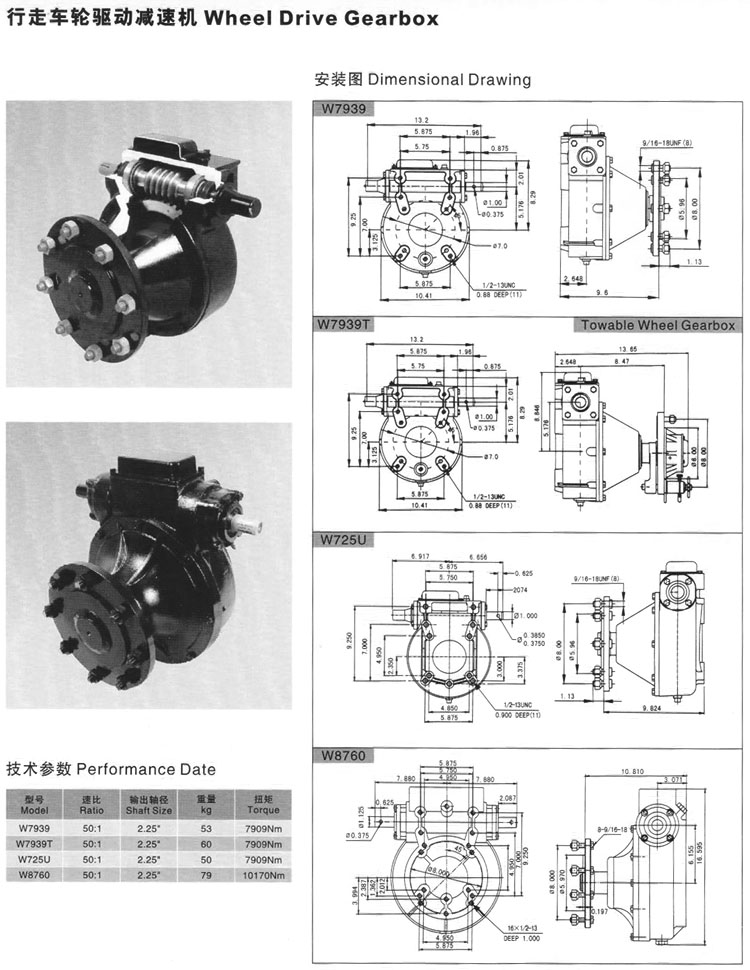 W7939,W7939T,W725U,W8760,行走車輪驅(qū)動減速機