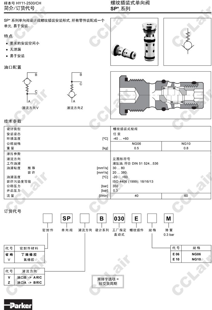 SPVB030EE06M,SPVB030EE10M,SPZB030EE06M,SPZB030EE10M,Parker螺紋插裝式單向閥 |