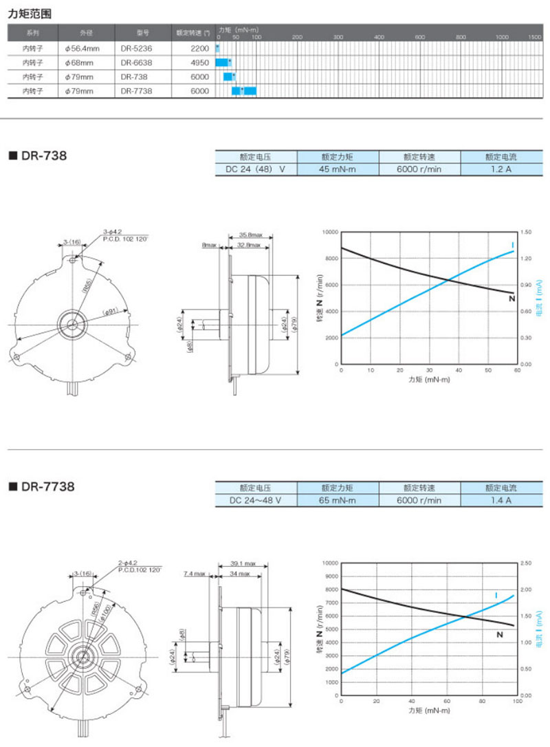 DR-5236,DR-6638,DR-738,DR-7738,內(nèi)轉(zhuǎn)子直流無刷馬達