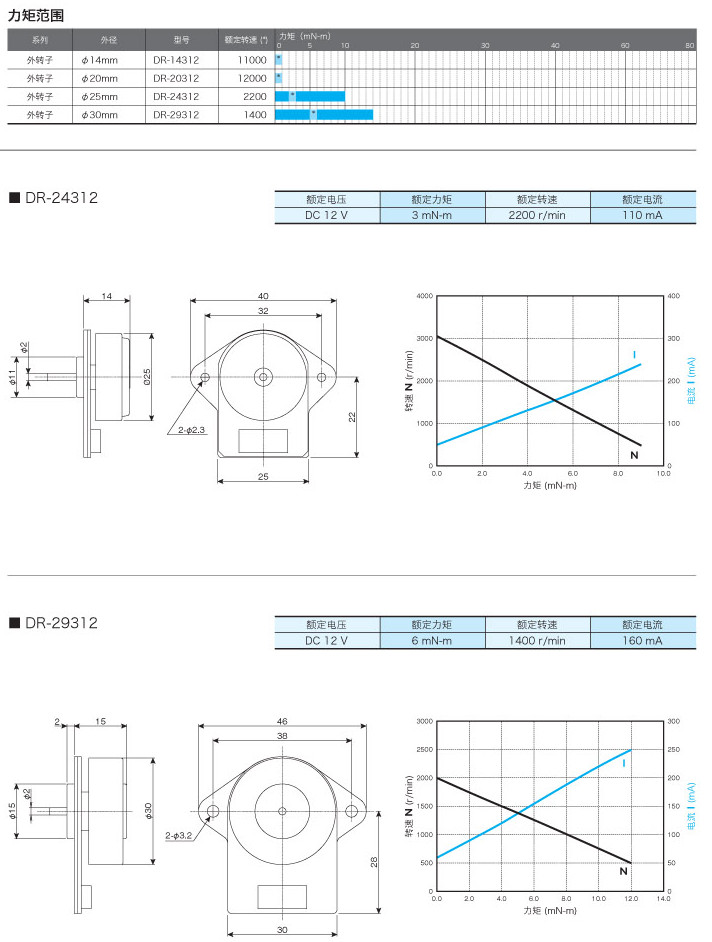 DR-14312,DR-20312,DR-24312,DR-29312,外轉(zhuǎn)子直流無刷馬達(dá) |