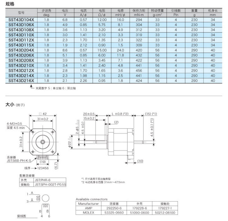 SST43D104X,SST43D106X,SST43D108X,SST43D110X,SST43D112X,兩相混合步進(jìn)馬達(dá) |