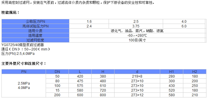 YG07-25P-DN50,YG07-25P-DN80,YG07-40P-DN100,泵前過濾器
