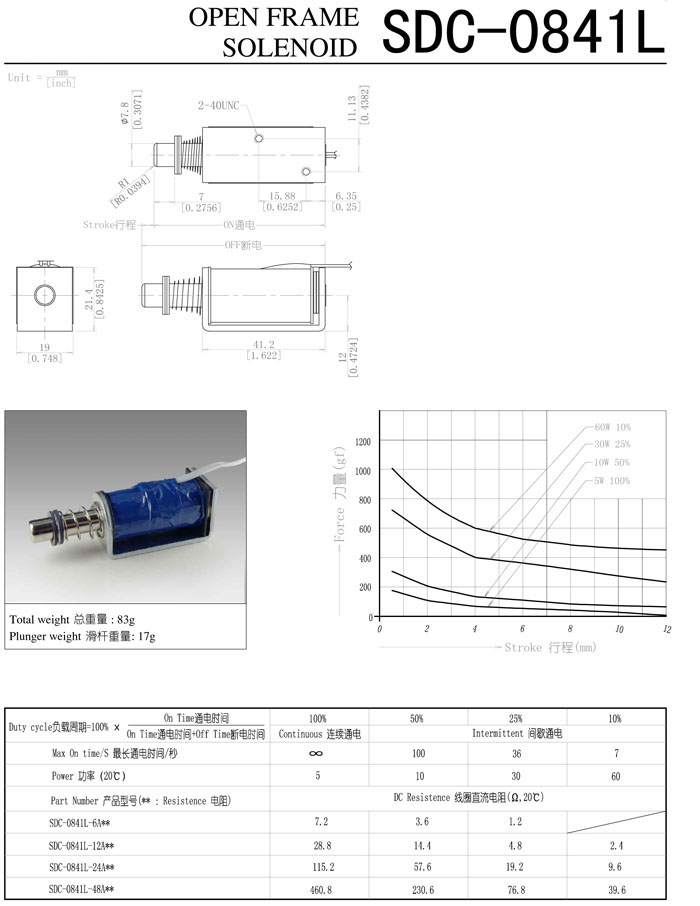 SDC-0841L-6A,SDC-0841L-12A,SDC-0841L-24A,SDC-0841L-48A,直動電磁鐵 |