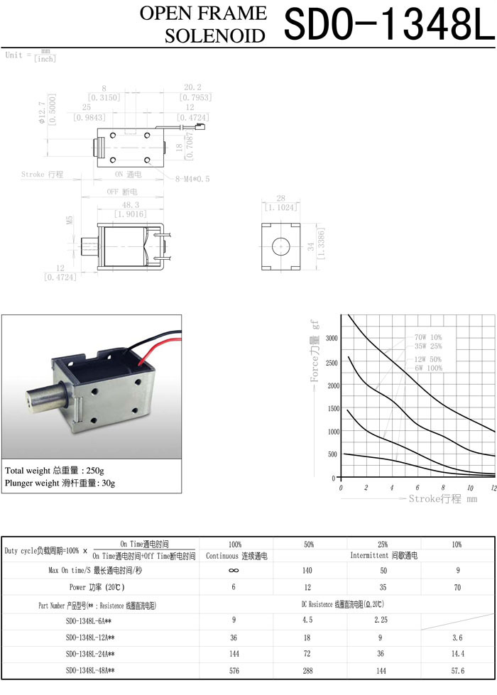 SDO-1348L-6A,SDO-1348L-12A,SDO-1348L-24A,SDO-1348L-48A,直動電磁鐵 |