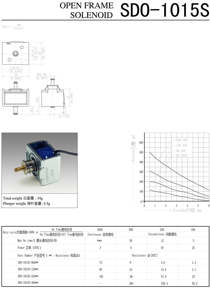 SDO-1015S-06A,SDO-1015S-12A,SDO-1015S-24A,SDO-1015S-48A,直動電磁鐵