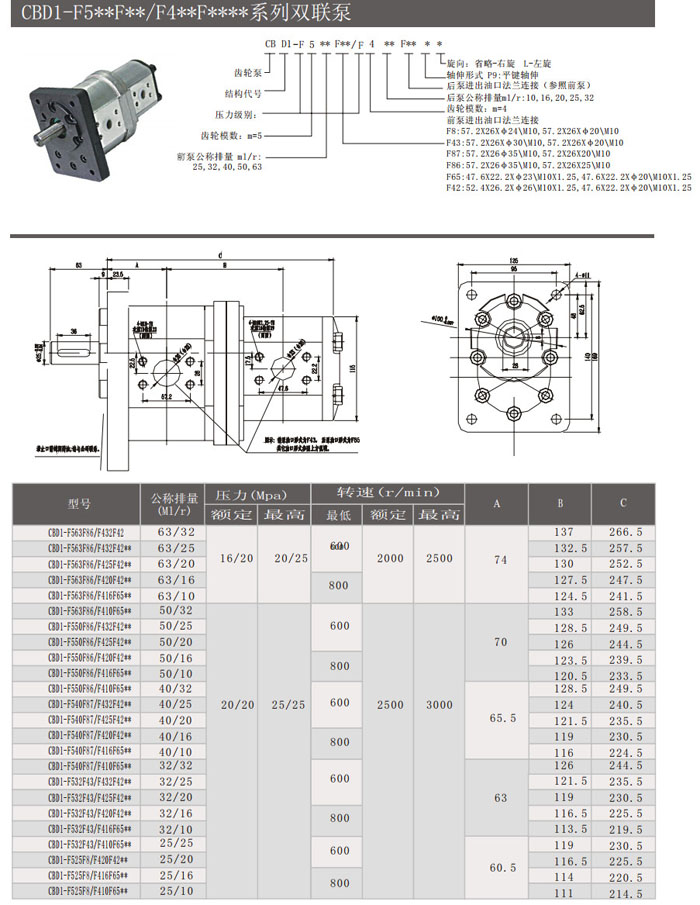 CBD1-F563,CBD1-F550,CBD1-F540,CBD1-F532,CBD1-F563F86/F432F42,CBD1-F525F8/F416F65P9L,雙聯(lián)泵