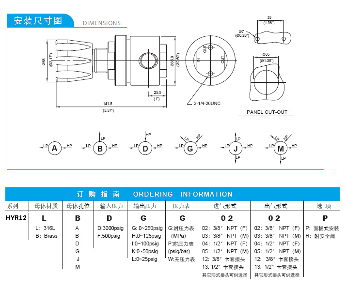 母體螺紋:進(jìn)出氣接口1/2" NPT(F),