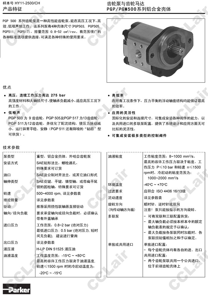 PGP517A,PGP517M,PGP517B,PGP517A0140CD1H2,PGP517M0140CD1H2,PGP517B0140CD1H2,Parker齒輪泵